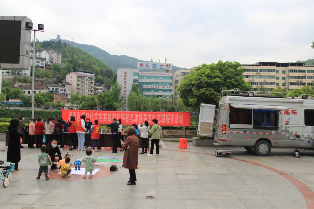 4月22日,朝天区“普及科学知识 提升全民科学素质”新时代文明实践科技科普志愿服务支队志愿服务活动在朝天城区同乐园广场举行。本次活动由区委宣传部主办、区科协承办,朝天镇人民政府协办,区级部门相关单位参与了此次活动。活动共计200人参加,活动现场通过发放疫情防控、实用技术、森林防火、卫生健康、防邪反邪宣传资料和开展现场咨询、科普大篷车巡展等活动,通过播放科普视频,指导群众现场注册“天府科技云”APP,浏览科普知识,促进了城乡群众全民科学素质提升。