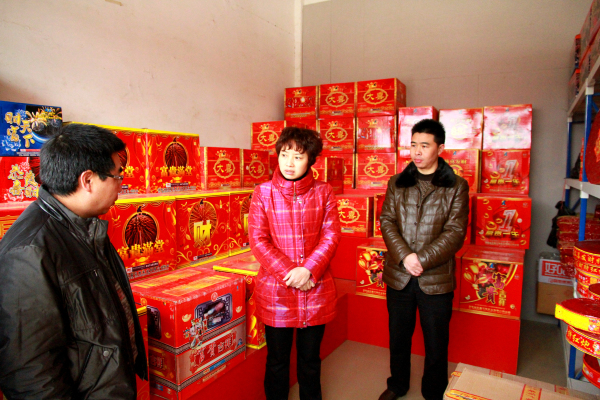 在羊木镇烟花爆竹专营店和朝天烟花爆竹专营公司存储仓库,伏玉琼仔细查看了营业执照、从业人员资格证、产品安全质量标识、消防安全器材配备等经营安全条件,详细询问储存仓库进出库管理制度和值班守卫等情况。她要求,相关部门要按照“抓预防、除隐患、堵漏洞、保安全”的指导思想,全力开展烟花爆竹安全隐患排查工作,对隐患要切实整改,对违法违规行为要坚决查处;要切实规范储存库的进货和批发装卸等环节的管理,严格建立人员值班和交接班制度,加强现场安全巡查和安全监控,搞好储存设施建设,提升烟花爆竹安全管理水平;要加大宣传力度,提高群众安全意识,确保全区群众过一个平安、祥和的春节。