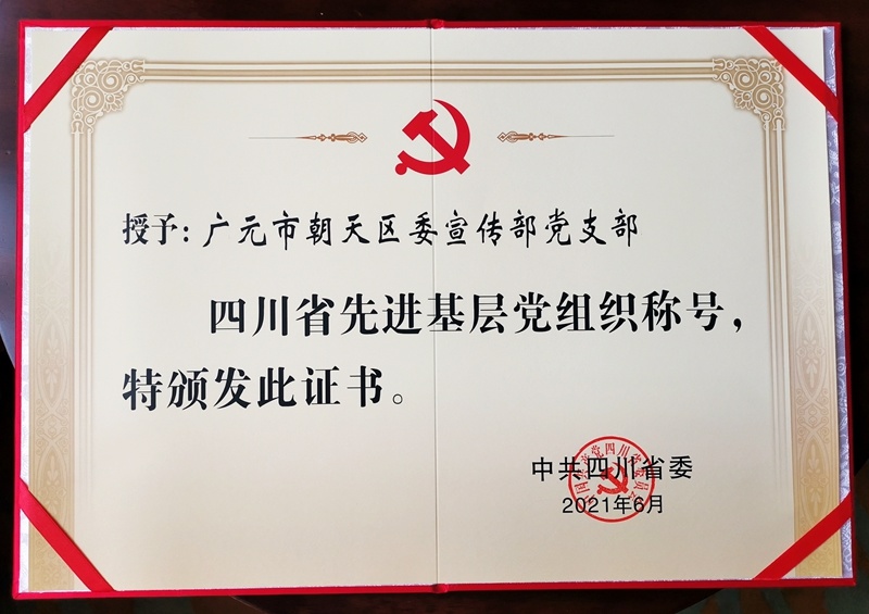 记者从广元市朝天区委宣传部获悉,近日,中共四川省委印发《关于表彰四川省优秀共产党员、优秀党务工作者、先进基层党组织的决定》,表彰了优秀共产党员300名、优秀党务工作者200名、先进基层党组织300个。其中,广元市朝天区委宣传部党支部荣获“四川先进基层党组织”称号。