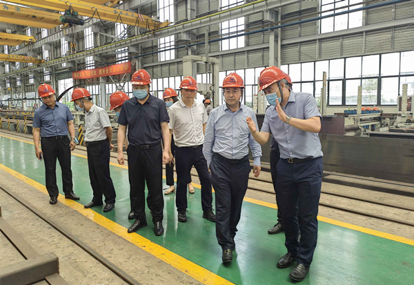 在东南网架股份有限公司,余飞宇一行实地考察了装配式钢结构生产线、钢结构住宅小区项目,详细了解了企业发展历程、项目建设情况和运营情况。余飞宇充分肯定了该企业在行业领域取得的突出成绩,双方就朝天绿色智能装配式(钢结构)建筑产业基地建设项目相关情况作了深入交流和探讨。余飞宇要求,相关部门要进一步强化协调服务,进一步加强对接,力争项目早日落地开工建设。