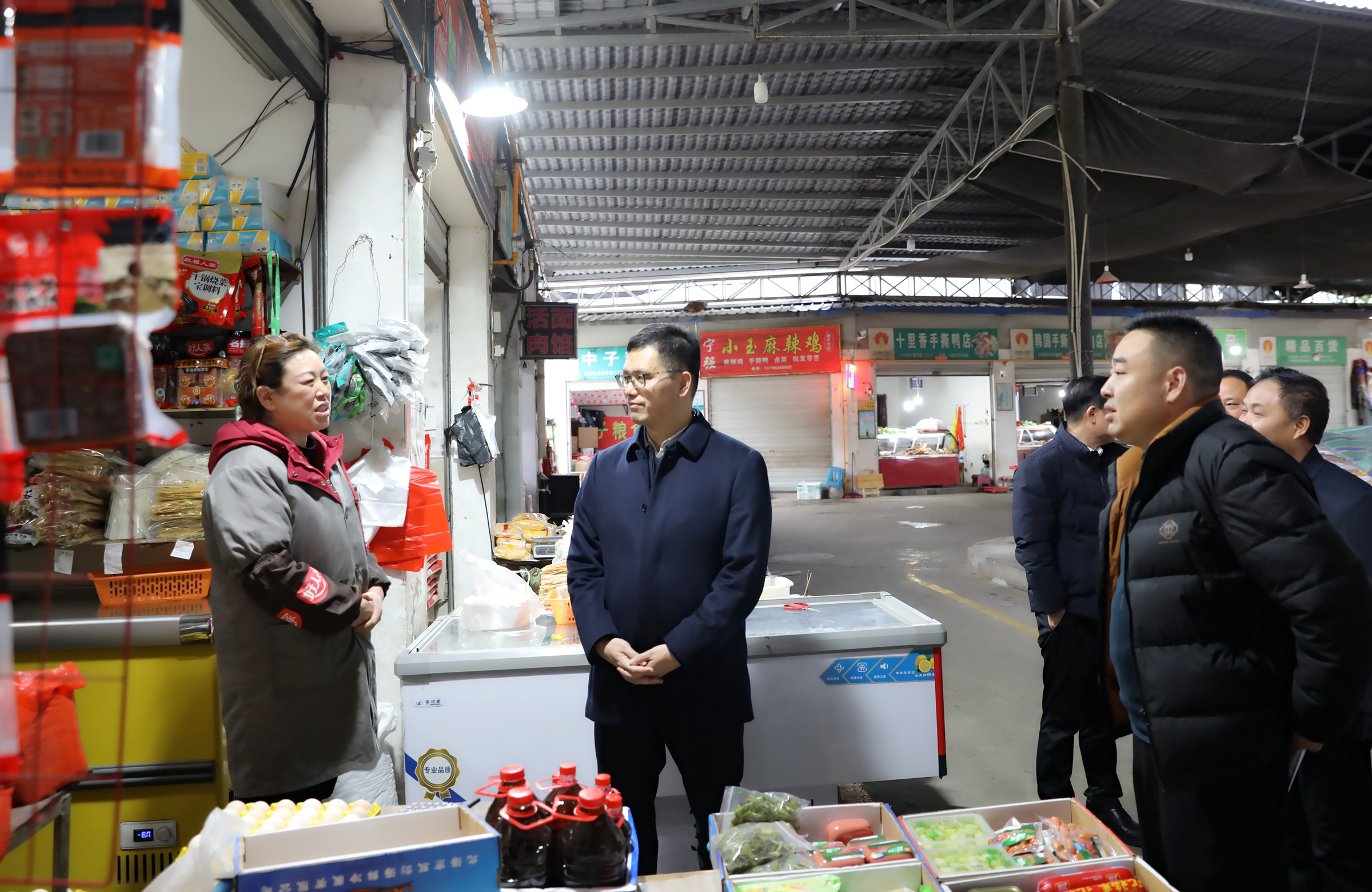 本网讯(王杰)1月29日下午,区委书记郭祖炎专题调研全区商贸和市场监管工作。他强调,要深入学习贯彻党的二十大关于“构建高水平社会主义市场经济体制”的部署要求,进一步压实责任、细化举措、狠抓落实,推动商贸物流与市场监管同频共振,切实保障春节期间市场供应充足、价格稳定、安全有序,为我区经济社会高质量发展作出更大贡献。