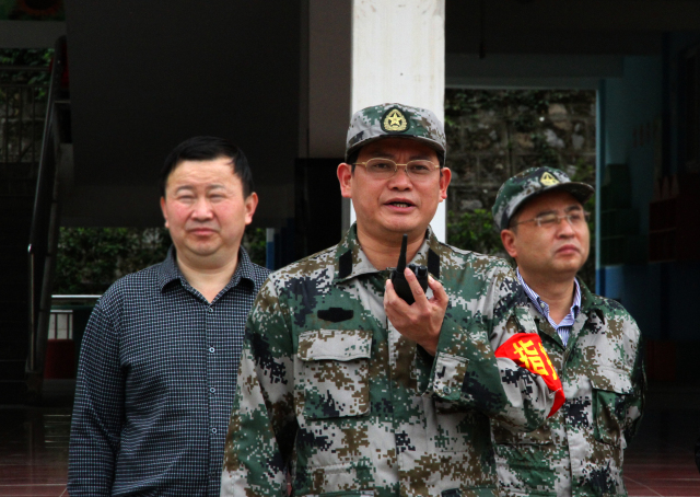 上午九时,区委书记蔡邦银宣布:朝天区2013年防灾救灾演练开始
