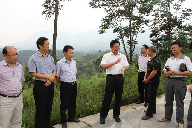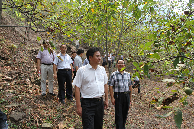 蒲家乡河坝场村3000亩核桃种植基地里,一株株核桃树排列有序,成熟的核桃挂满了枝头,昔日的荒山坡已成为农民增收的“绿色银行”。“河坝场村利用退耕还林的坡地种核桃,既绿化了山坡,又增加了农民收入,实现了生态效益与经济效益双丰收。”规范化的种植、标准化的管理、规模化的生产,赢得蔡邦银连声称赞。“一家富不算富,大家富才是真的富。”得知该村通过“业主﹢农户”的模式,成立核桃专业合作社,将一家一户的小生产,与千变万化的大市场有效对接,走出了一条林业产业发展的新路,蔡邦银给予了充分肯定,并鼓励合作社负责人,要充分利用成熟的技术,带领广大村民扩大种植规模,一同发家致富。
