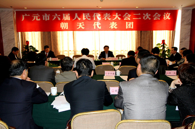 本网讯(记者 张玉伟) 3月19日下午,市六届人大二次会议朝天代表团在广元国际大酒店召开代表团会议,推选市六届人大代表、区委书记蔡邦银为朝天代表团团长,市六届人大代表、区委副书记、区长伏玉琼和市六届人大代表、区人大常委会主任、党组书记梁黎为副团长。蔡邦银主持预备会。梁黎传达有关会议精神。