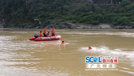 四川在线广元讯(滕德怀)为扎实做好防汛抢险救援工作,提高全体官兵水上救援能力,5月8日下午,朝天消防大队在辖区嘉陵江上游朝天区朝天镇清风峡村杨家湾处开展了水上救援实战演练。