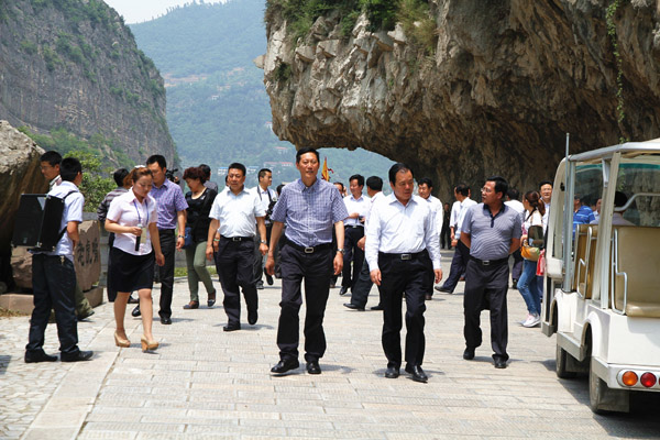 在明月峡景区,代表团首先听取了朝天区旅游局有关负责同志的情况介绍,然后参观了景区马车道、古栈道、嘉陵江水道、演武场、蜀道文化陈列馆等景点,并详细询问了景区建设、管理及运营情况。