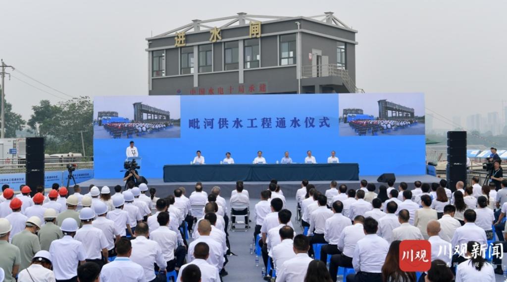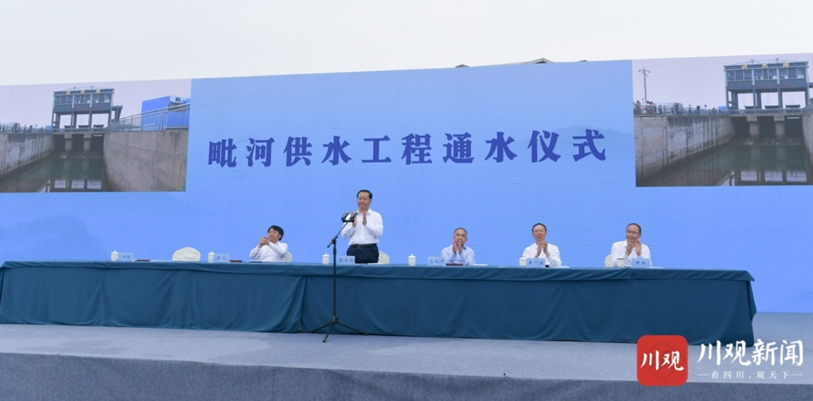 10时许,毗河供水工程通水仪式以“主会场+分会场”形式举行。仪式上,水利厅负责同志汇报毗河供水工程有关情况,成都市、遂宁市、资阳市负责同志通过视频连线方式分别汇报所在地工程完成及试水情况。省委常委、常务副省长罗文讲话,代表省委、省政府对工程顺利建成通水表示祝贺,要求各地各有关方面围绕生产、生活、生态用水需要,聚焦保证农业和乡村振兴用水、保障城镇和产业用水、保护生态和人居环境用水,科学规划配置水资源,打造形成四川水网体系,建立健全水利工程建设和管理长效机制,形成支持水利事业发展的强大合力,奋力推动新时代水利事业高质量发展。