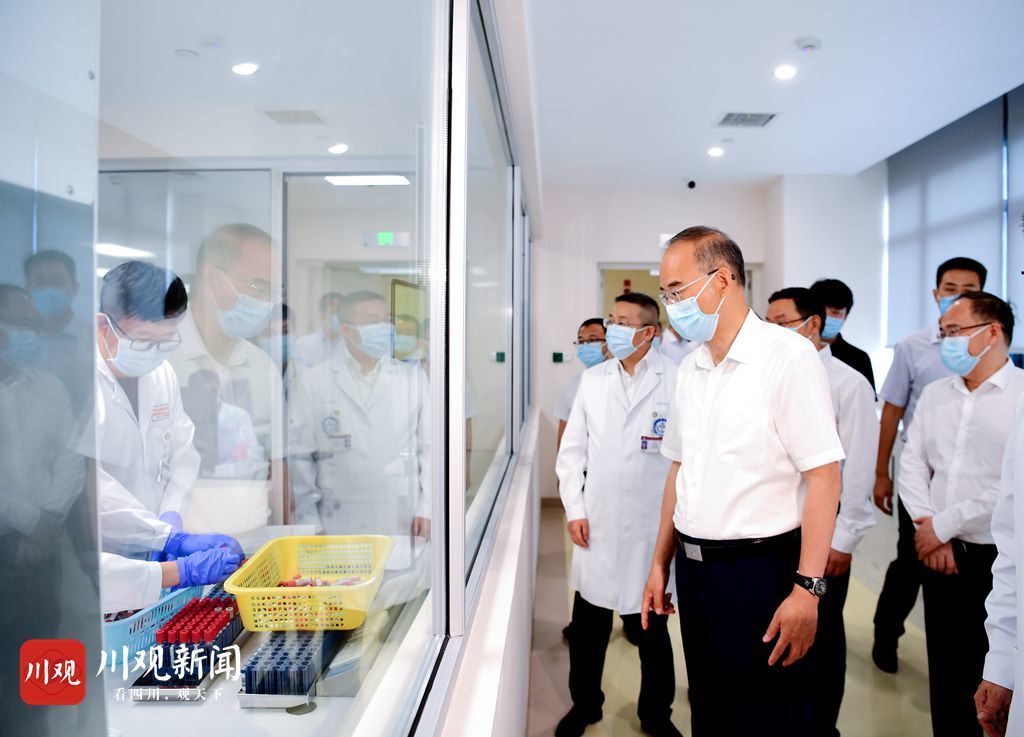 在四川大学华西医院,黄强调研转化医学国家重大科技基础设施建设运行进展,了解生物治疗创新产品临床研究、新冠病毒溯源开展及核酸检测试剂研发等情况,鼓励大家肩负起医疗卫生“国家队”使命,追求卓越、勇攀高峰,在创新药研发、疾病防治等方面推出更多有价值原创性成果,为国家解决更多“卡脖子”问题,持续擦亮让四川人民引以为傲的金字招牌。