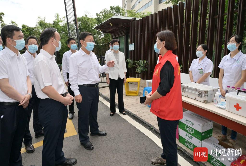 7月20日,省委书记王晓晖到成都市疫情防控指挥部应急指挥中心,听取应对处置当前疫情工作情况汇报,视频连线锦江区沙河街道锦东庭园小区,了解小区封控管理及服务保障工作开展情况。