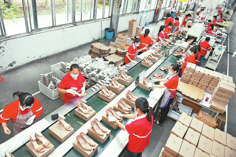 九月二十一日,位于成都市双流区蛟龙工业港的尚志鞋业(四川)有限公司正全力赶订单。记者 李向雨 摄