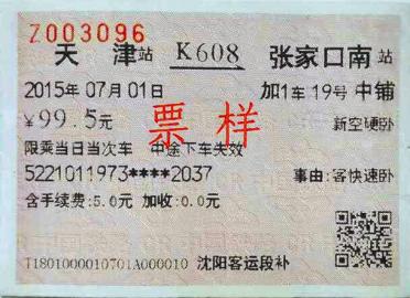 列车移动补票票样