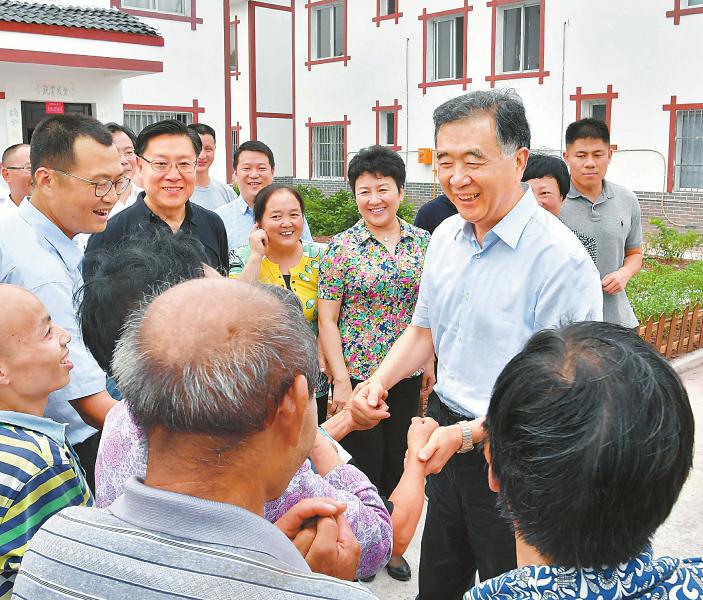 九月十六日,国务院副总理、国务院扶贫开发领导小组组长汪洋在省委书记王东明陪同下,来到渠县渠南乡大山村考察易地扶贫搬迁集中安置点建设和产业脱贫情况,与当地群众亲切交流。本报记者 毛漫丁 摄