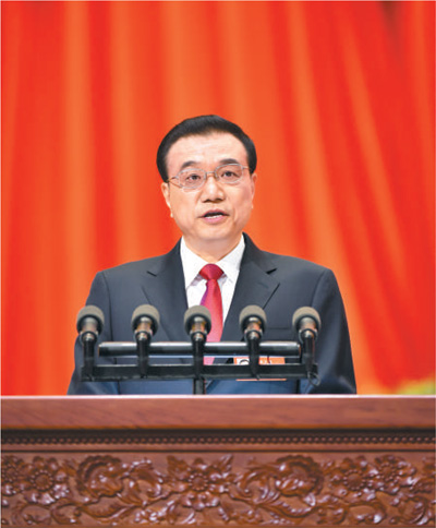 3月5日,李克强总理代表国务院在十二届全国人大五次会议上作《政府工作报告》。 本报记者 李 舸摄 |