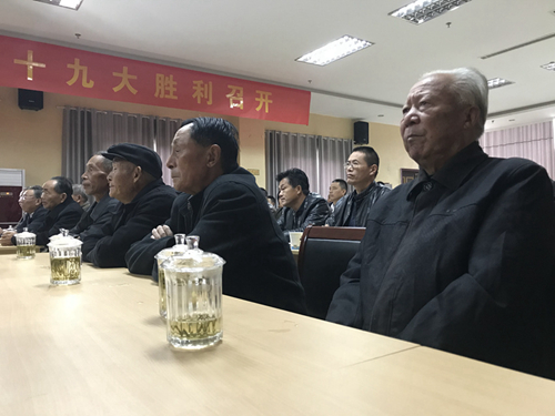 安徽省凤阳县小岗大包干带头人观看十九大开幕会。韩畅 摄