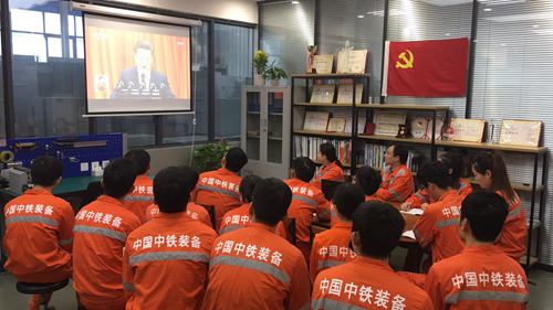 上午8点,位于河南郑州的中铁工程装备集团有限公司盾构总装车间“李刚大国工匠”工作室里一片忙碌,工友们身着干净的工装,挂党旗、擦桌子、搬凳子、调设备……为收看十九大开幕会做准备。