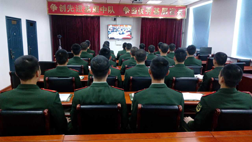 武警长春支队四中队战士观看党的十九大开幕式。王帝元 摄