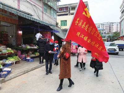 苍溪县党员干部突击队金穗社区分队在辖区市场开展疫情排查、防控宣传及卡口劝导工作。杨晓彦摄
