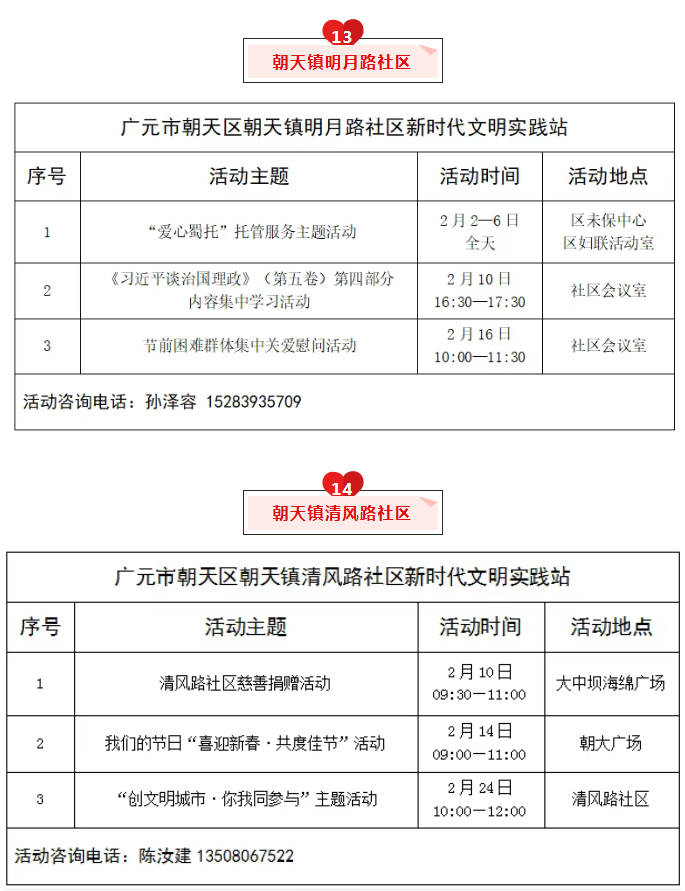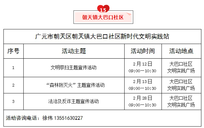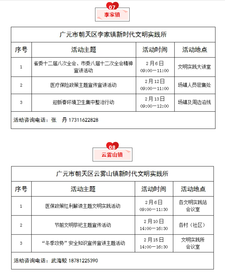 朝天区2026年2月文明实践活动清单公布