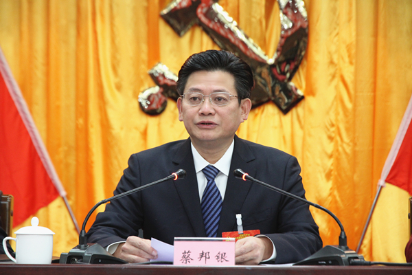 受区委常委会委托,市委常委、区委书记蔡邦银作工作报告