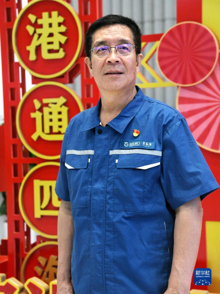 这是9月15日在青岛港拍摄的张连钢。新华社记者 李紫恒 摄