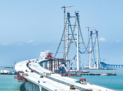 “十三五”规划、“十四五”规划分别部署了165项、102项重大工程项目,成为扩大有效投资的重要抓手,确保了项目跟着规划走,要素跟着项目走。图为2021年12月,集“桥、岛、隧、水下互通”于一体的世界级跨海集群工程——深圳至中山跨江通道正在铺设沉管隧道。