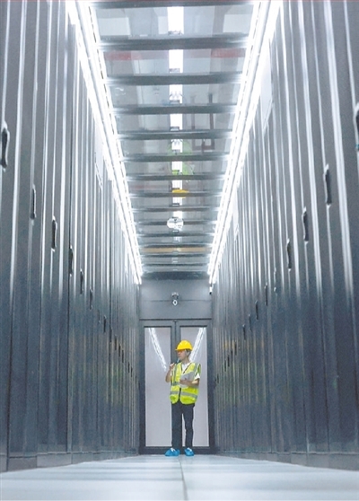 近年来,贵州省全力实施大数据战略行动,数字经济增速全国领先,给当地群众生产生活方式带来显著改变。图为工作人员在中国移动贵阳数据中心机房内巡检。