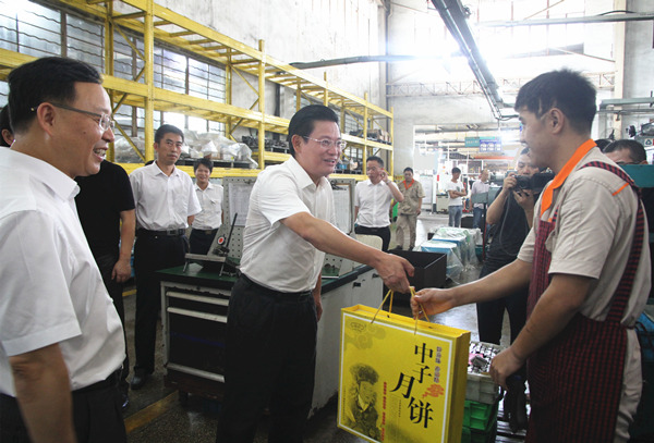 座谈会前,蔡邦银专程慰问了在浙江三鸥机械股份有限公司的8名朝天籍务工人员,了解了他们的工作、生活情况。考察了朝天区驻路桥区农民工工作站和台州市劳动力中心市场。