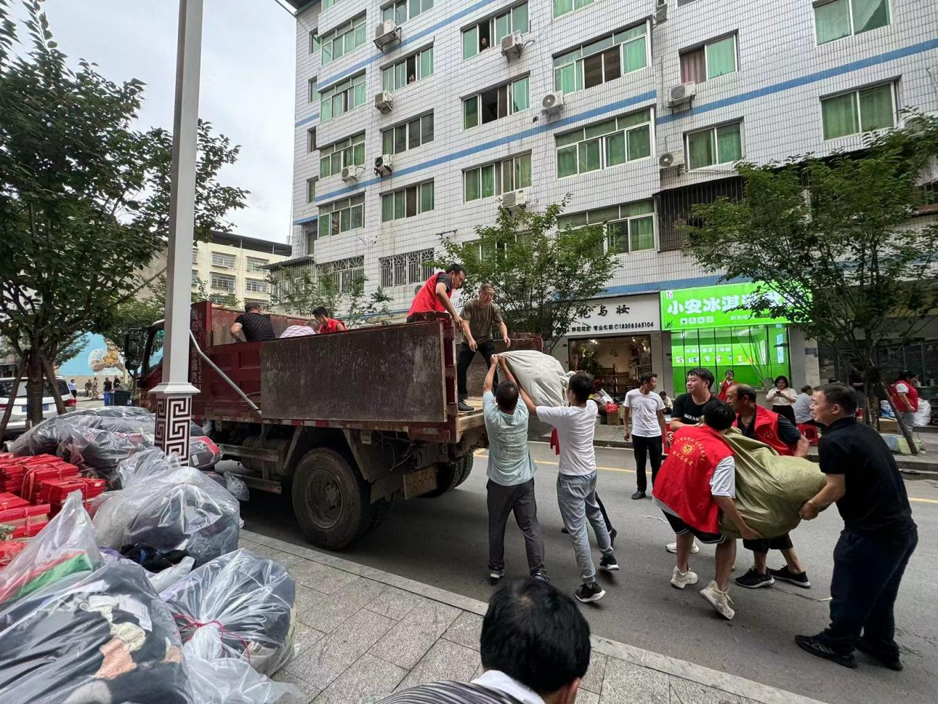 区政府办组织大中坝片区包联单位党员干部紧急转运应急储备物资