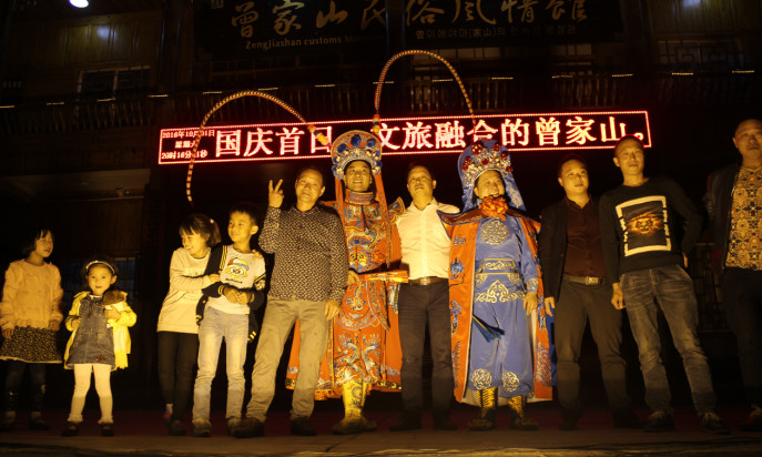 本网讯(王杰)国庆黄金周首日,为加大曾家山宣传力度、烘托国庆节日氛围、丰富景区文化资源、弘扬爱国主义情操、同心助力脱贫攻坚,曾家山景区管委会借助区委区政府主办“同心助脱贫·文化惠民生”文艺进农村慰问演出的平台,特邀该表演组成员于昨日19:30分,在游客中心为周边群众及留宿的游客献上了一场90分钟的文艺表演。(赵翠岚)
