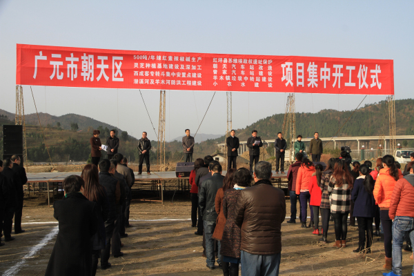 朝天区第四季度集中开工项目包括年产500吨精制天然辣红素辣椒碱生产线建设项目、西成客专转斗集中安置点基础设施建设项目、朝天汽车客运站提升改造项目、曾家旅游汽车客运站建设项目、羊木镇生活垃圾卫生填埋场项目、灵芝种植基地建设及深加工项目、朝天区2014年度小农水建设项目、朝天区2014年度潜溪河羊木河防洪治理工程和朝天区红坪县苏维埃政权遗址保护等9个项目,涵盖了工业、农业、基础设施、民生改善等多个领域,总投资5亿余元,项目建成后对于朝天进一步扩大投资、做强产业、改善民生具有重要意义。