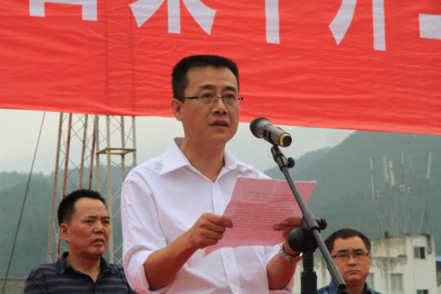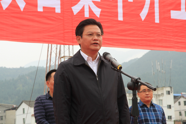 徐骁受区委书记蔡邦银,区委副书记、区长伏玉琼委托,代表区四大班子向出席开工仪式的各位领导和各位来宾表示热烈欢迎和衷心感谢,向集中开工的项目业主单位表示热烈祝贺。他指出,今年以来,我区认真贯彻市委、市政府实施“大项目促大发展”战略的部署要求,坚持把项目工作作为经济工作的重中之重,一批重大产业和基础设施项目加快推进,推动了全区社会经济持续快速发展。他要求,全区上下要按照市委、市政府和区委、区政府的部署要求,保持发展定力,突出大抓项目、促大发展,为我区加快发展注入新的动力。区级各有关部门和相关乡镇要主动投身项目建设主战场,以干部作风大转变促进项目建设大突破。项目业主和施工单位要精心组织,科学施工,力争早日军统投产达效,助推全区经济社会跨越发展,为推进全面小康和建设美丽朝天做出积极贡献。