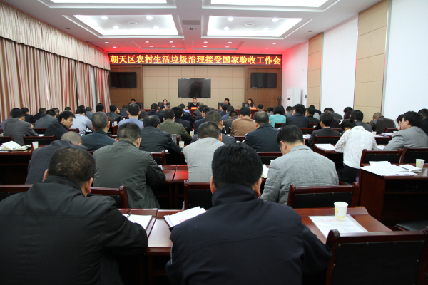 会议传达了省、市农村生活垃圾治理验收工作动员会会议精神,并就我区农村生活垃圾治理工作进行安排部署。据了解,为深入贯彻落实省委、省政府“以更高的标准、更大的力度,进一步深化城乡环境综合治理”的决策部署,全面改善提升农村人居环境,进一步完善农村生活垃圾“户分类、村收集、镇(乡)运输、区处理”模式,全面改善农村居民生产生活条件,以统筹城乡发展、造福农村居民为出发点,力争第一批通过国家对朝天农村生活垃圾治理的验收,为全面改善农村居民生产生活条件奠定基础。验收重点内容为 “7+2”:即区乡“治理效果、组织领导、政策规划、经费保障、设施情况、考核办法、保洁队伍”等7项,村“ 治理成效、长效机制”等2项。验收的步骤和时间安排:5月份下旬,国家10部门将对我市进行抽样验收。