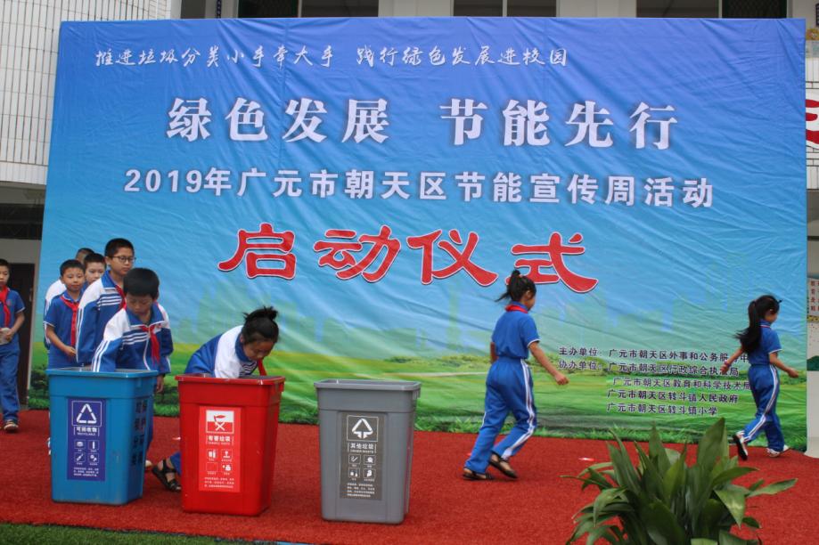 6月18日,由广元市朝天区外事和公务服务中心主办的“绿色发展节能先行”为主题节能宣传周启动仪式在转斗镇小学举行。区级相关部门、转斗镇相关负责人参加活动。