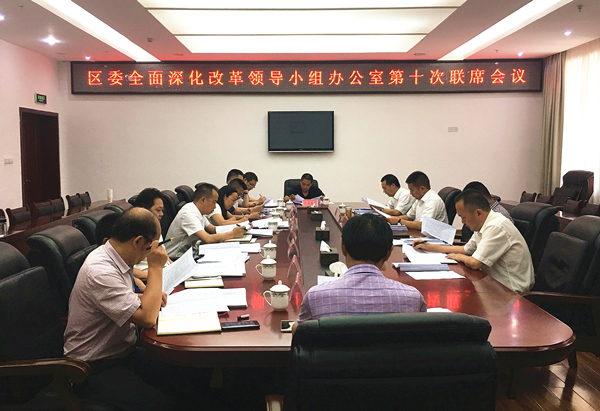 7月13日下午,区委副书记罗凌云主持召开区委全面深化改革领导小组办公室第十次联席会议,讨论审议相关改革事项,区委常委、区委办主任刘剑波参加会议。