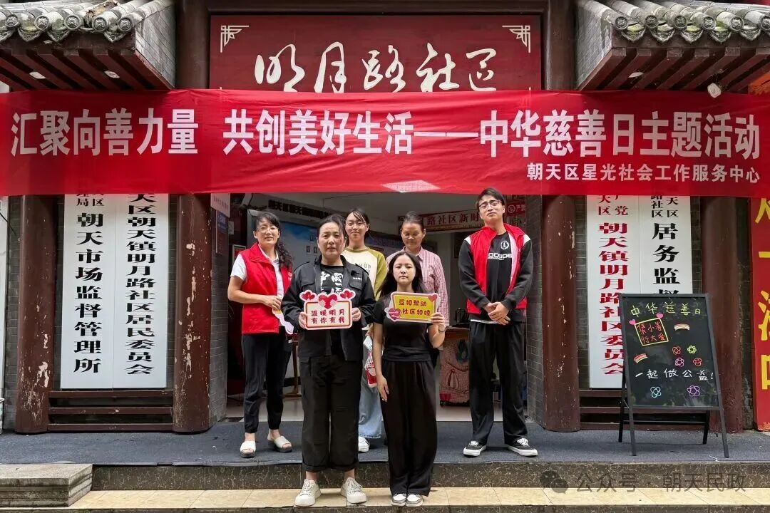 近期,为弘扬慈善文化、激发社区居民参与公益慈善的热情。区民政局、区慈善会联合朝天区星光社会工作服务中心,在朝天镇明月路社区开展了以“汇聚向善力量 共创美好生活”为主题的中华慈善日活动。