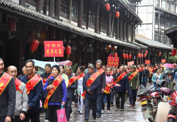在一片响亮的锣鼓声中,烈属、军属、退役军人及家属戴着绶带和红花从康养广场行至民俗文化广场,走过之处行人纷纷驻足观望,并投去敬意和祝福。