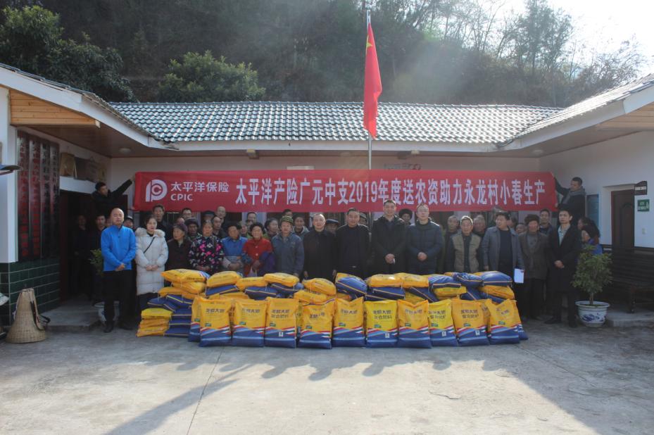12月4日,太平洋产险广元中支公司携帮扶干部一行20余人,为汪家乡永龙村全体村民送去了扶贫物资复合肥,为春耕注添了“催化剂”,把温暖送到了群众心坎里。