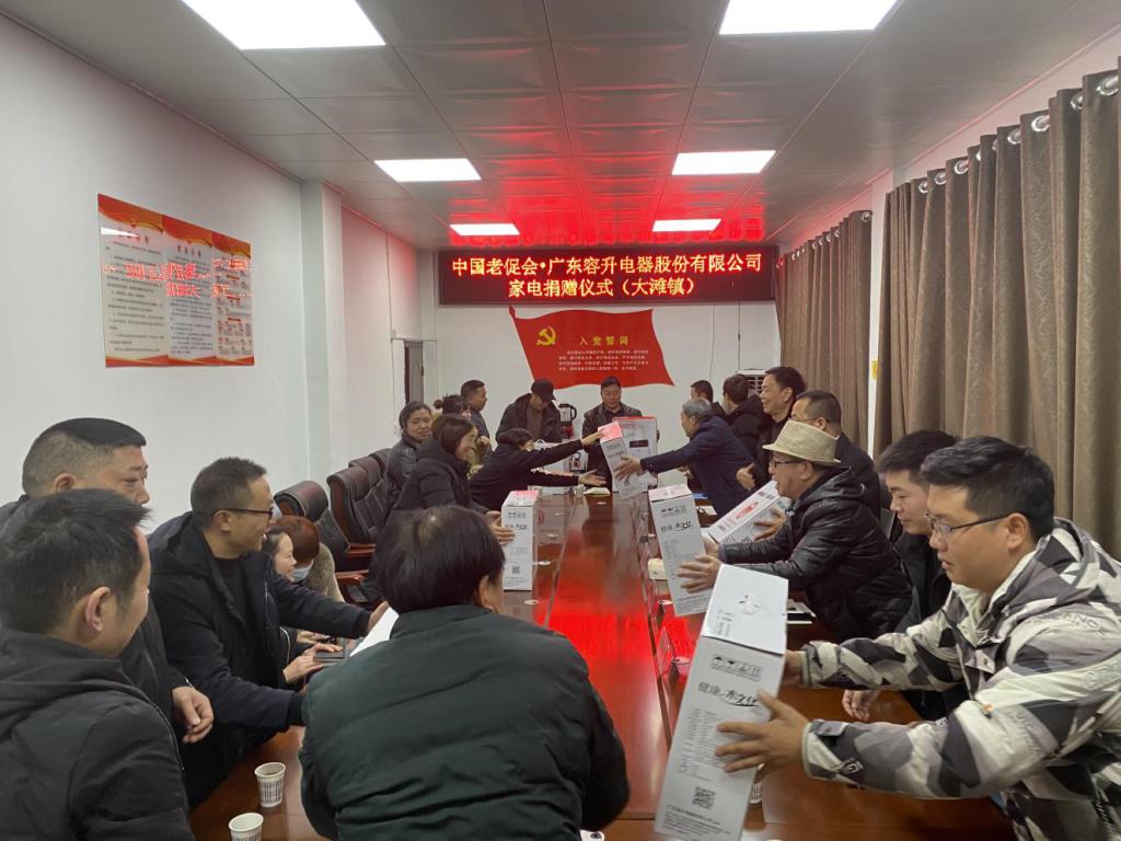 12月21日,中国老促会会员单位广东容升电器有限公司向革命老区捐赠电器启动仪式在朝天区大滩镇政府三楼会议室举行。朝天区老促会会长贾光升、老促会秘书长赵家贵、大滩镇党委书记蒲玉斌、老促会社会事业协作委主任王文祥、大滩镇党委副书记及老促分会会长赵澧、广东容升电器有限公司朝天片区组长易文波、第三方驻广元片区安装负责人陈兴文出席捐赠仪式。会议由朝天区老促会秘书长赵家贵主持,各村(社区)、敬老院负责人参加了捐赠仪式。