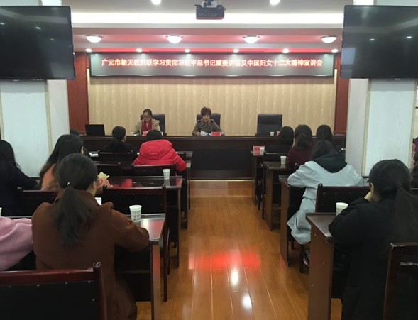 为深入学习贯彻习近平总书记重要讲话及中国妇女第十二次代表大会精神,11月13日上午,朝天区妇联组织召开了全区妇女干部学习贯彻习近平总书记重要讲话及中国妇女十二大精神宣讲,区妇联第三届执委、乡镇妇联干部、区级机关妇委会主任,村社区妇联主席代表等80余人参加了会议。