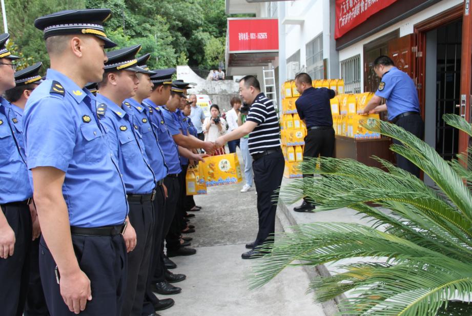 6月6日,在区文明办的组织下,广元市朝天区学雷锋爱心联盟、广元市中子越龄食品有限责任公司联合举办端午节慰问活动,向为创建文明城市作出积极贡献的城市管理执法人员、环卫工人送去慰问品和节日的祝福,表达最衷心的感谢。区文明办、区综合行政执法局主要负责人和相关工作人员参加活动。