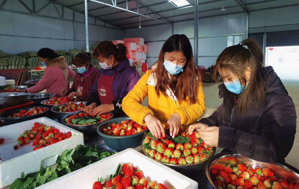 “小草莓”,贡献乡村振兴“大力量”。2020年,中子镇转斗草莓种植示范基地年实现总产值1500万元,共带动221户农户693人(其中,贫困户98户302人)年人均增收7000元,为全镇村集体经济创收130余万元。
