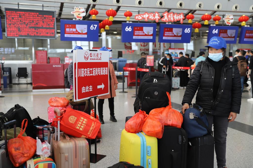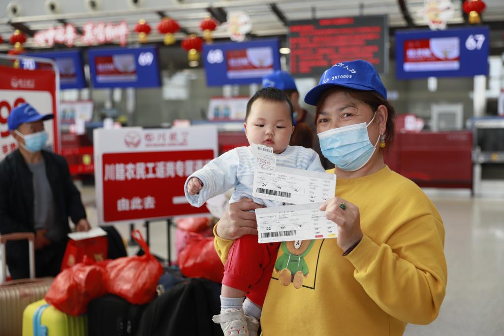 据悉,为帮助川籍农民工节后安全有序返岗,四川省开展“点对点一站式”返岗专机活动。计划在2月23日至28日期间开行返岗专机20架,运送2000余名川籍农民工前往务工较集中的北京、上海、广东、福建、江苏、浙江、新疆、西藏等地。