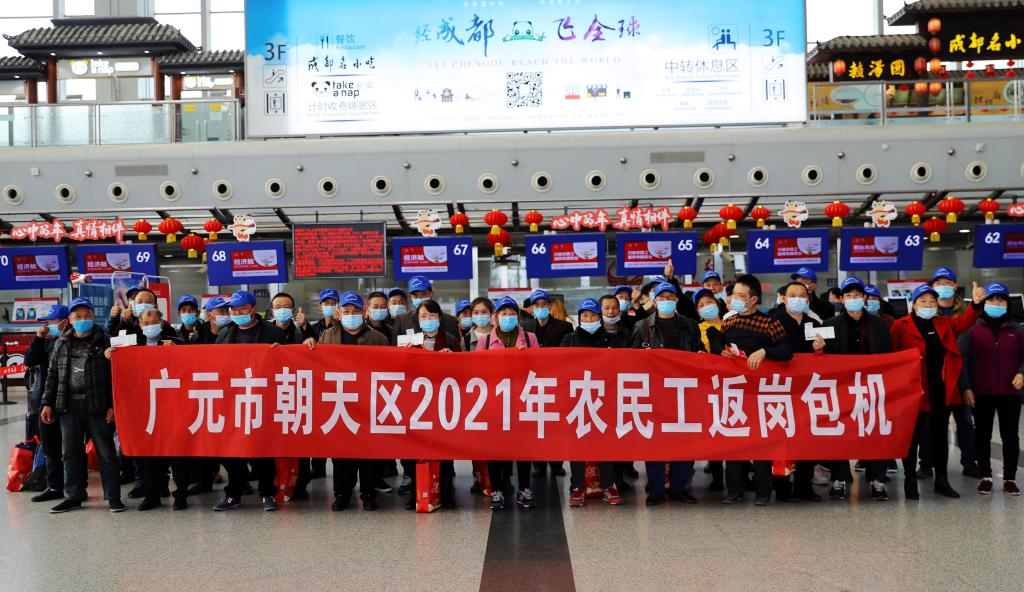 广元市朝天区2021年农民工返岗包机留影