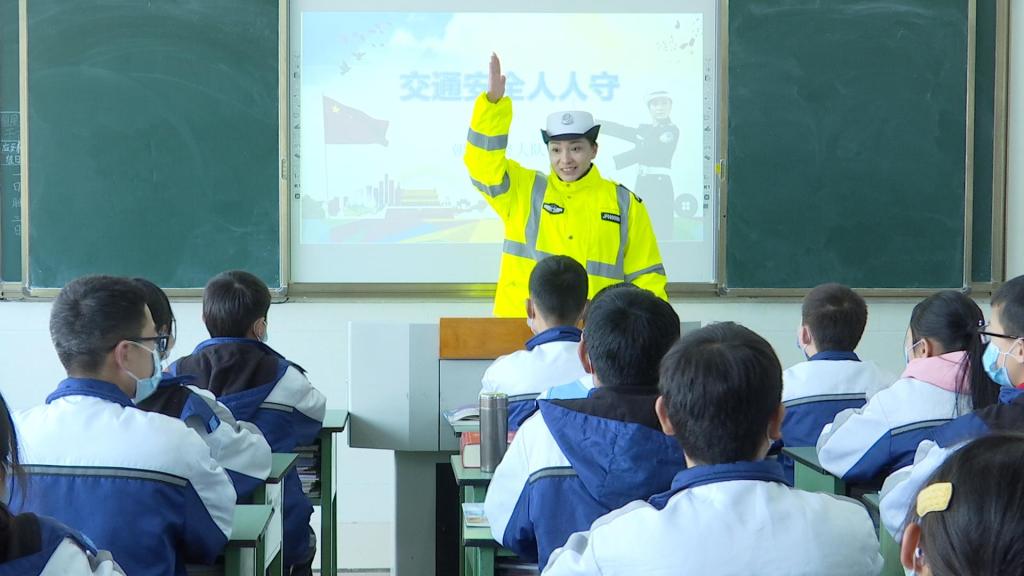除了学习红色精神,在朝天区之江中学,学校邀请了区交警大队的民警走进课堂,为同学们讲解上学、放学途中安全文明乘车等方面的交通安全知识,并现场互动,答疑解惑。风趣幽默的讲解,轻松愉快的氛围,同学们在“开学第一课”上收获满满。