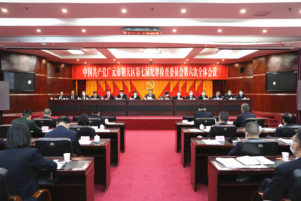 蔡邦银指出,一直以来,特别是七届区委以来,区委牢牢把握“抓党建、优环境、促发展”这一主线,始终牢记市委对朝天提出的“作表率、当楷模、走前列”殷切嘱托,坚持底线思维、增强忧患意识,以巨大的政治勇气,高质量推进全面从严治党,坚决扫除阻碍高质量发展的“拦路虎”和“绊脚石”,全区经济社会持续健康发展,风清气正良好政治生态持续巩固。“十三五”以来,区委坚定不移强化政治监督,坚决做到“两个维护”;坚定不移强化责任担当,坚决推动“四责协同”;坚定不移强化正风肃纪,坚决破除作风顽疾;坚定不移强化标本兼治,坚决一体推进“三不”;坚定不移强化激励保障,坚决保护干事热情;坚定不移加强队伍建设,坚决锻造纪检“铁军”,全面从严治党工作取得重大成就。但同时,也必须清醒认识到,推进全面从严治党存在的问题和不足不容忽视,党风廉政建设和反腐败斗争依然任重道远。要保持政治清醒、头脑冷静,切实担负起管党治党政治责任,以知难而进、严抓到底的勇气和一以贯之、久久为功的定力,坚决把全面从严治党、党风廉政建设和反腐败斗争引向深入。
