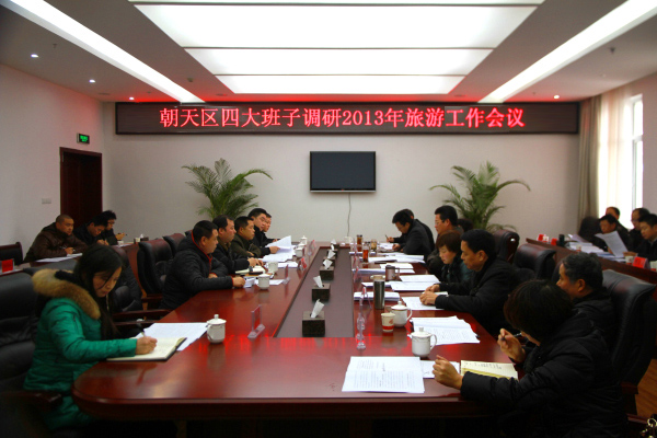 蔡邦银强调,2013年我区旅游工作要进一步明确战略定位,抢抓机遇,加快完善各景区基础设施建设,提高旅游舒适度,努力争取旅游总收入突破10亿元,门票收入和游客接待量实现翻番,将旅游业培育成为有特色、有品位、有档次,促就业、惠民生的支柱产业,让旅游产业带动群众增收,进一步推动朝天区经济社会发展。