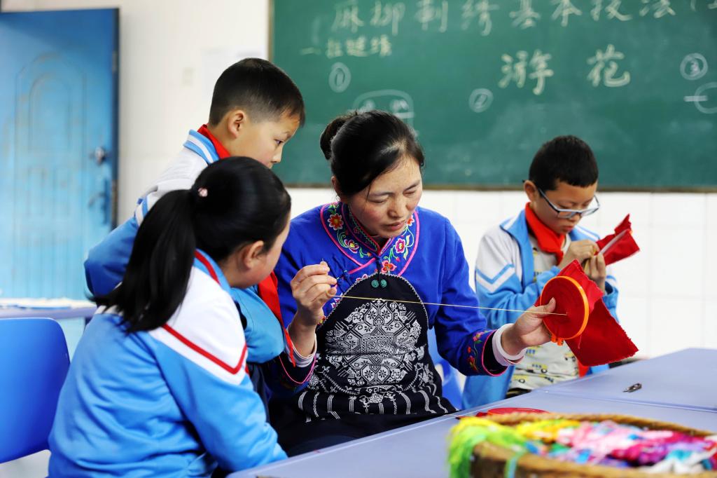 麻柳刺绣非遗传承人教授学生刺绣技艺 刘旭 摄
