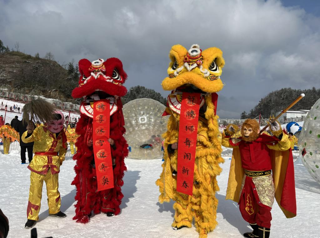 为更好满足冬奥之年全民参与冰雪运动的热情,曾家山滑雪场进行了全新打造升级,新扩戏雪区3万平方米,新推出了雪地自行车、雪地摩托、“坑爹”过山车等多种雪地娱乐项目。而且,春节期间,还开展了民俗文化活动表演。巨龙、雄狮踩着欢快的鼓点威武亮相,让游客在冰与火的碰撞中感受浓浓的年味。