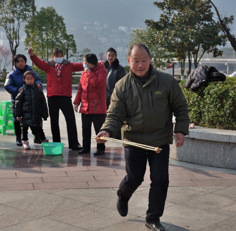 运乒乓球、夹核桃、摸石过河……“金虎进宝”、“龙行虎步”、“龙腾虎跃”等游戏区也吸引了许多群众参与。“参加活动不仅锻炼了身体,还能获取礼品”,72岁的余加容阿姨摸摸额头上因为跳绳而渗出的汗水,高兴地说,“别看我年龄大了,刚刚的跳绳,我一口气跳了31下,奖票轻松到手。”