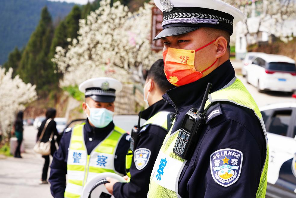 一到沙河场镇囗,警车备勤,两个进入通道有警察执勤。虽天气阴冷,没有往年周末的车水马龙,水泄不通,然从樱花谷开出车辆,依然络绎不绝。因为怕添堵,也怕耽误回家午饭点,汽车在场镇东出口停留,举头遥望樱花谷。